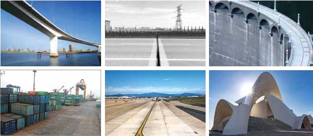 UHPCC can be used with no steel or less steel due to its properties of high strength, high ductility, and high toughness. To reach the same strength requirement, it can help building structures achieve lighter weight or smaller volume, making it the best choice for lightweight concrete structures, thin wall structures and special form buildings. But for most conventional buildings, UHPCC’s value lies in which it can greatly improve the buildings’ ability to resist crack, deformation, impact and fatigue, granting buildings upgraded safety, durability and seismic level. UHMWPE Fiber Reinforced Concrete UHPCC can be applied in Bridge deck and pier / Bridge expansion joint / Dam / Port and pier / Airport runway / Delicate buildings / Aseismic Structure / Cold Area Construction widely.
